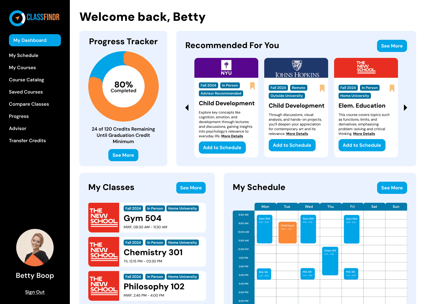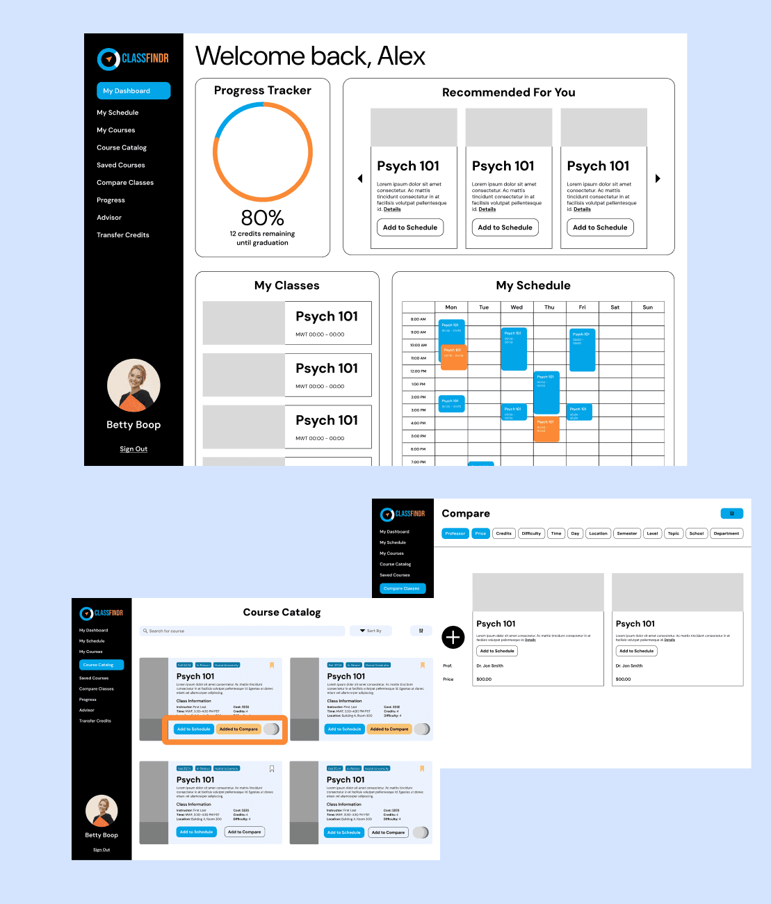 ClassFindr aims to streamline the process for students to find, compare, and register for courses that meet their academic needs across various accredited universities. Our team undertook the challenge to design ClassFindr, a platform that simplifies course discovery for students looking to take classes outside their primary institution. As the project manager of the team I undertook the responsibility of managing and assigning tasks, keeping a tight schedule, and making sure everything was clean and organized while also helping the the design and research of the final project.
