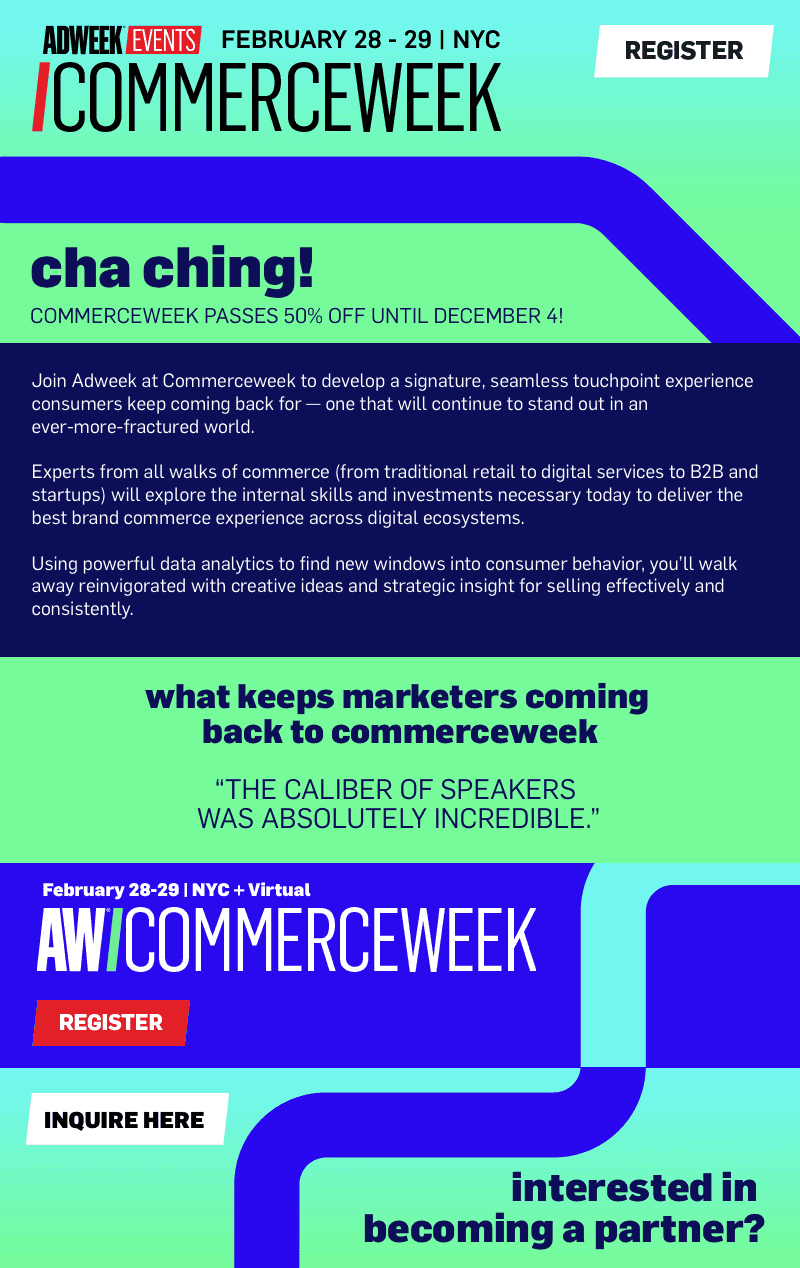 While working at Adweek, I worked on branding multiple events. Commerceweek is the first event in which I completely lead the branding and creative of the event and marketing assets.