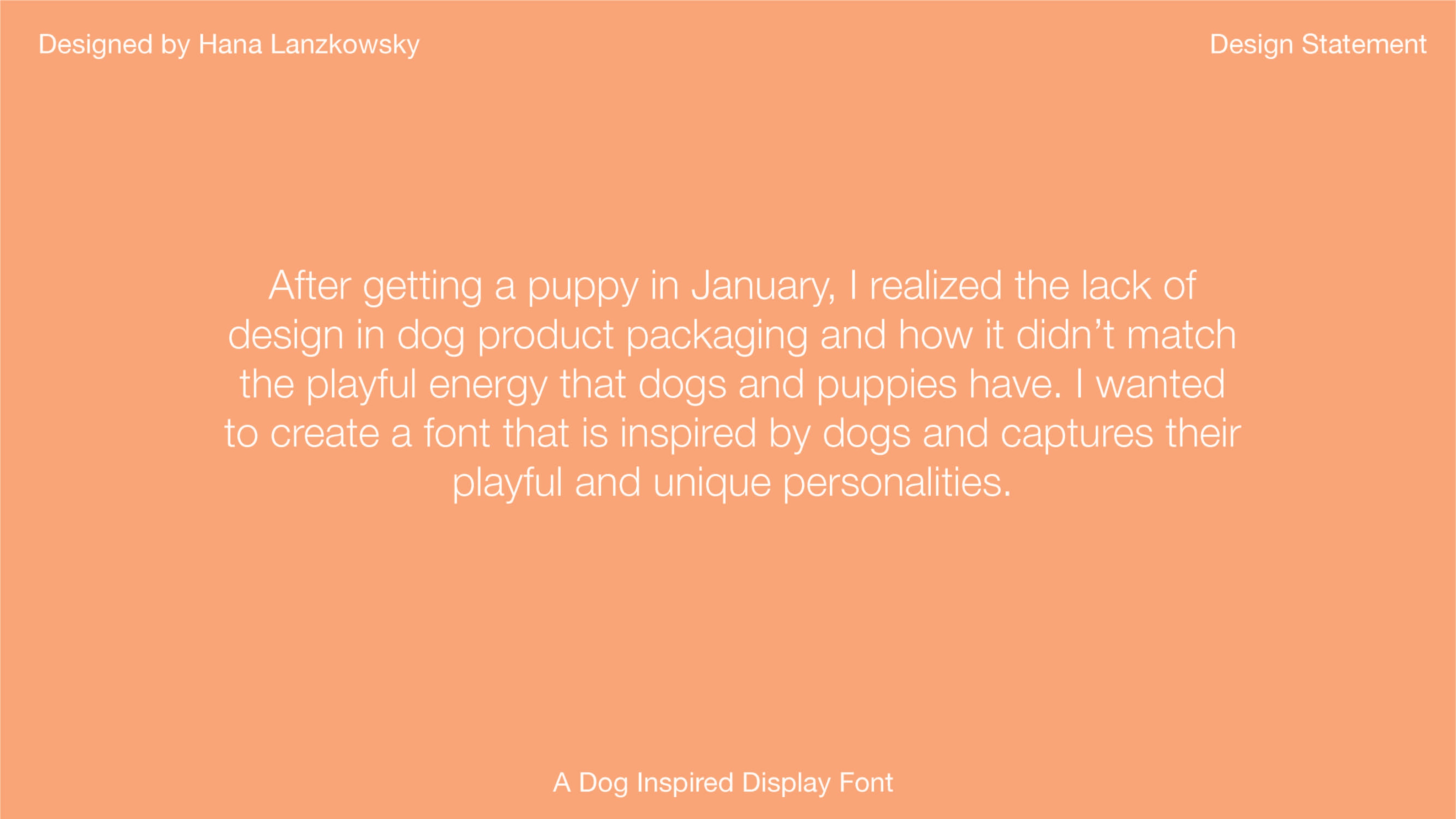 I have a lifetime love of dogs and when getting my newest puppy, I was inspired to create a display typeface that encapsulated the fun-spirited nature of a puppy.